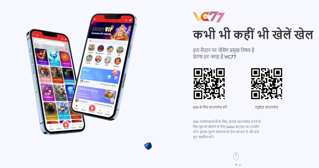 Downloading the VC77 app not only allows you to play on browsers or computers but also provides access to a wide range of betting games.